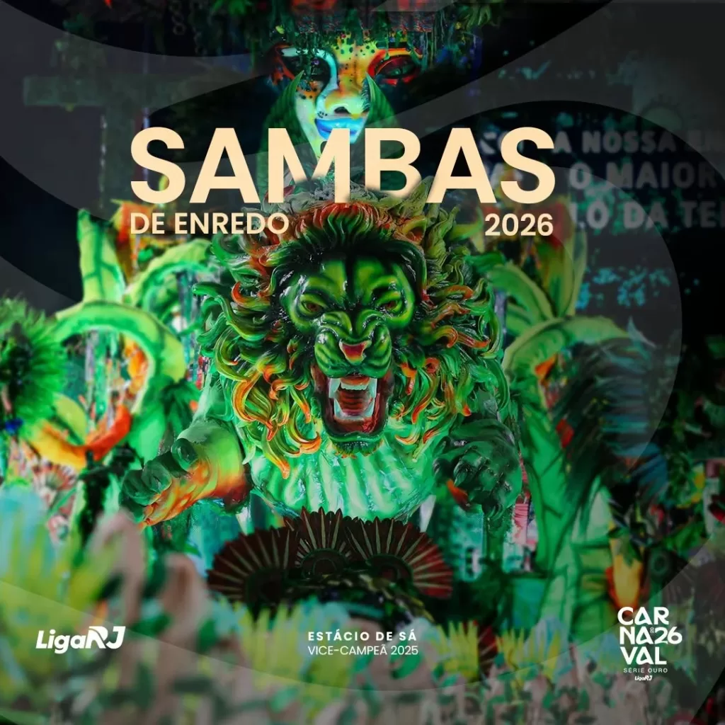 A Liga RJ divulgou a capa do álbum dos sambas-enredo da Série Ouro para o Carnaval 2026. A imagem traz o tradicional símbolo do Estácio de Sá, a escola vice-campeã de 2025.