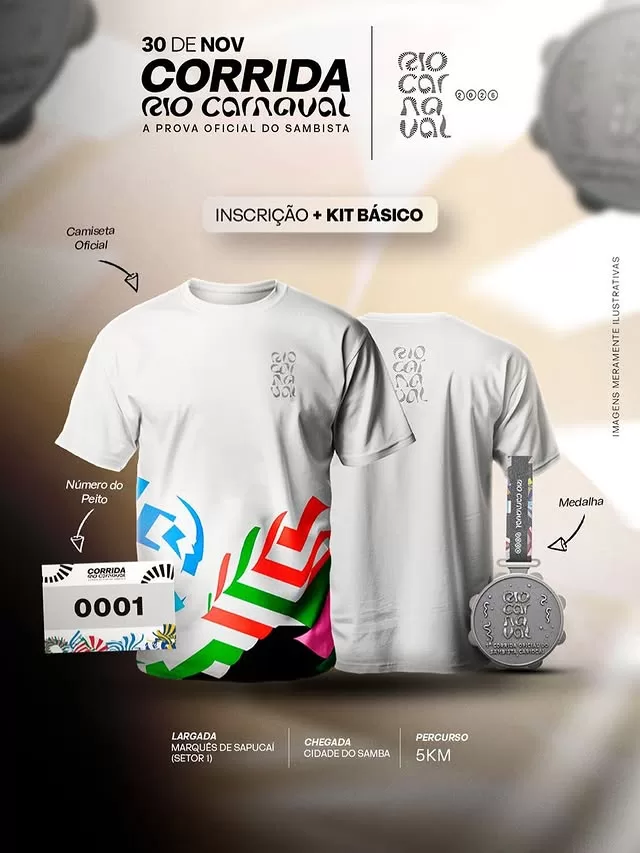 Na manhã de hoje foi divulgado nas redes sociais oficiais da CPReventos, organizadora da corrida Rio Carnaval 2025, o estilo final da camiseta e da medalha da corrida que serão entregues aos corredores contratantes do Kit Básico.