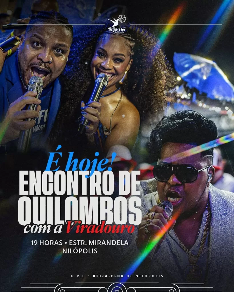 A Estrada Mirandela, em Nilópolis, promete ficar pequena para o encontro de duas gigantes do Carnaval carioca. A Beija-Flor de Nilópolis realiza hoje, a partir das 19h, o evento “Encontro de Quilombos”, que contará com a participação especial da Unidos do Viradouro.